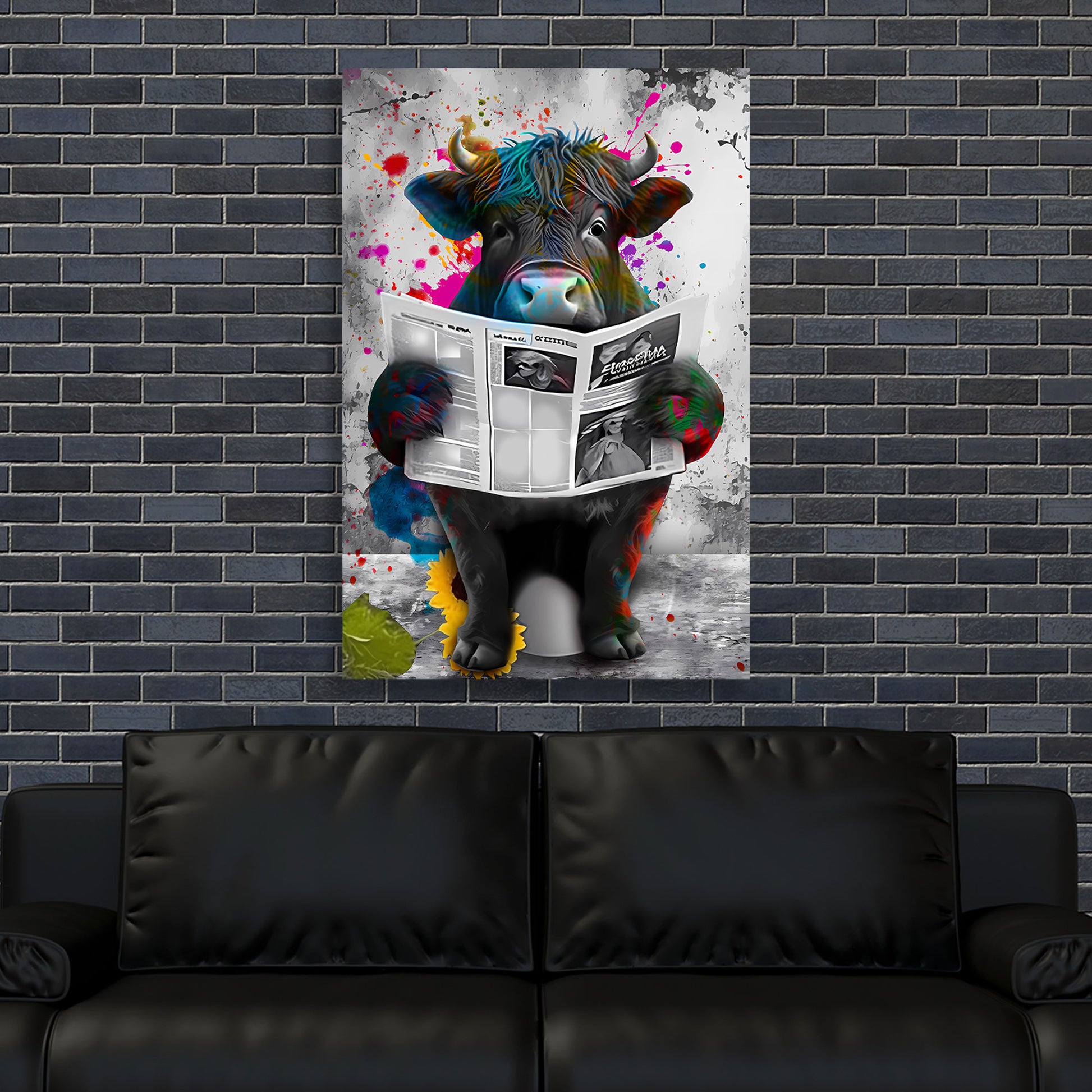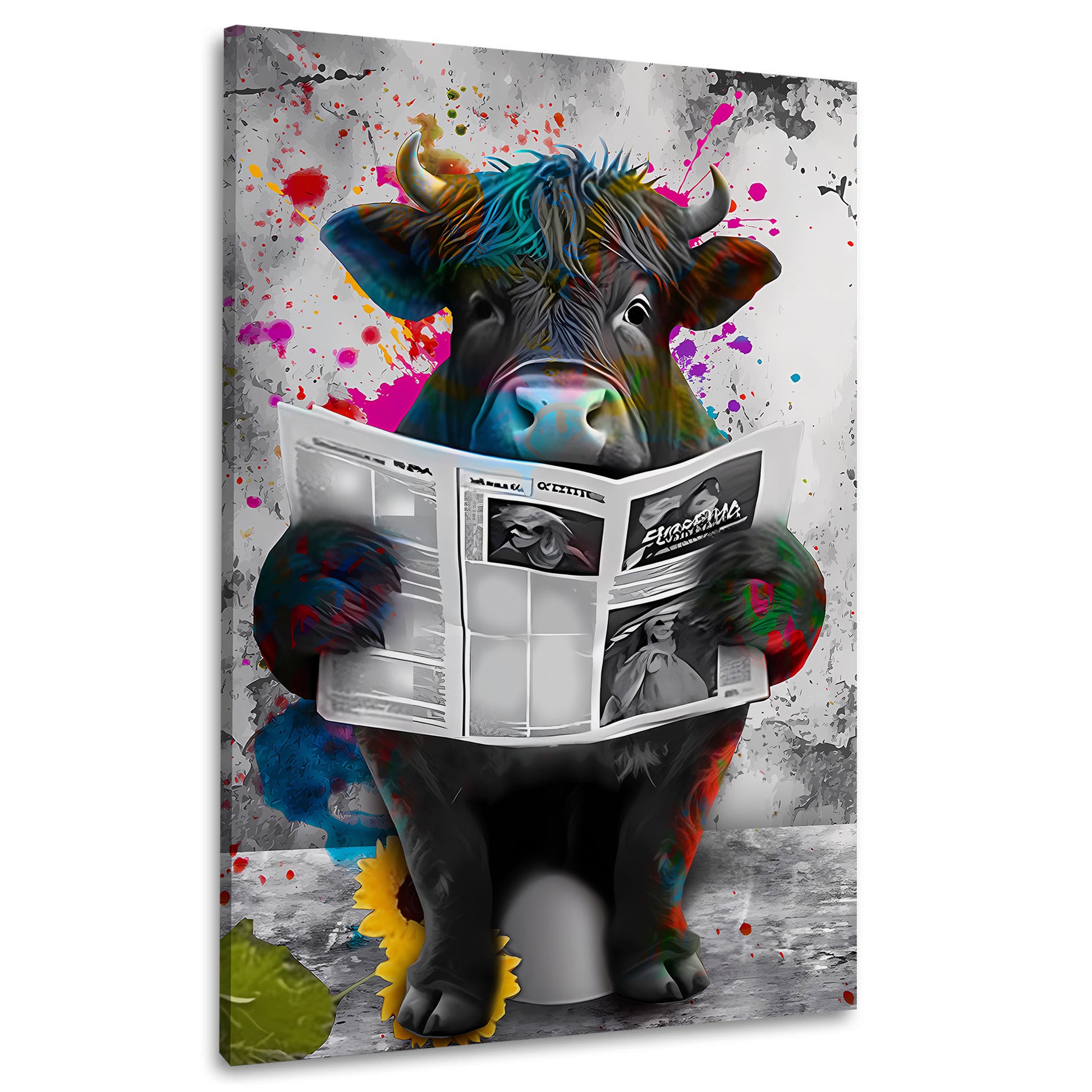 Street Art Stier Zeitung lesend Wandbild Kunstwerk