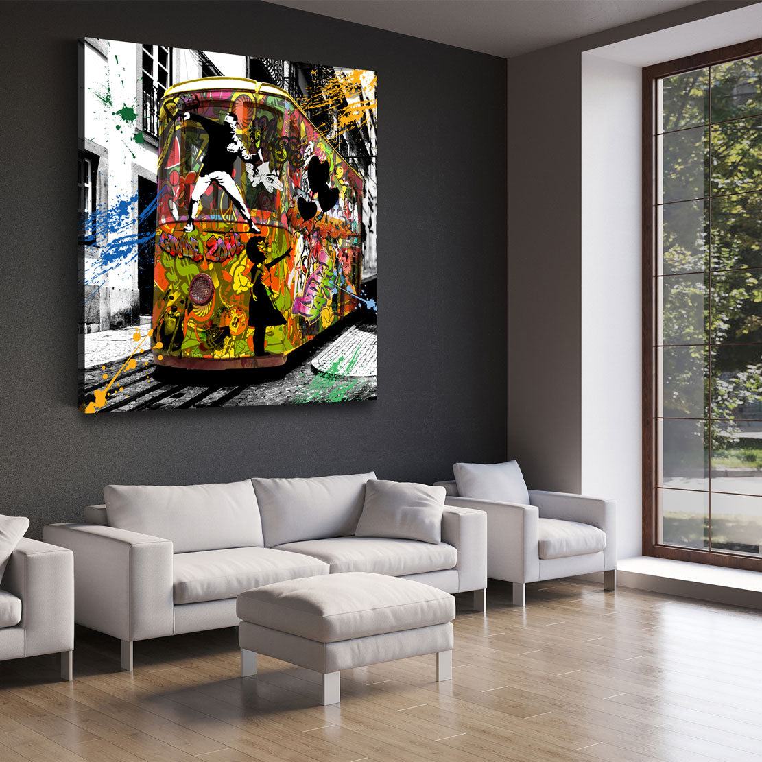 Street Art Straßenbahn Graffiti Wandbild Kunstwerk