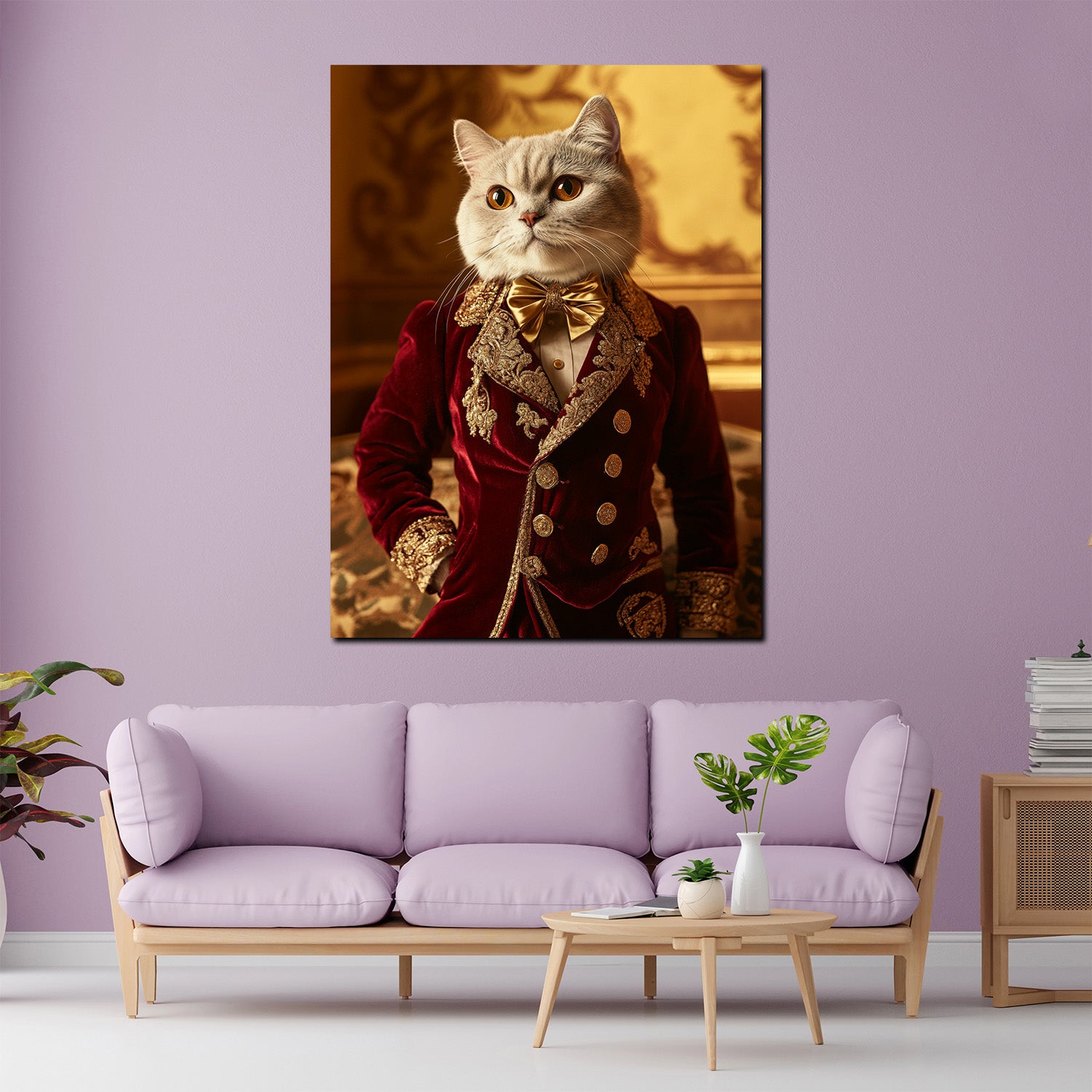Weiße Katze Barock Gewand Eleganz modern Wandbild Kunstwerk